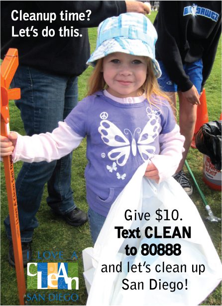 With your $10 donation we can mobilize 20 volunteers at a cleanup event in our community. On average, our volunteers pick up an amazing 15 pounds of trash and debris each. So, your one text message will remove 300 pounds of trash from San Diego’s beaches, bays, creeks, and canyons!