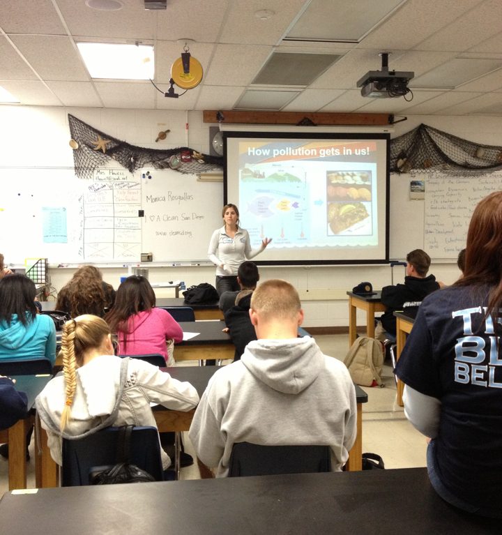Hey there readers of this blog and fans of I Love A Clean San Diego! My name is Christina, I’m the new Marketing Intern here at ILACSD and I’m so excited to be joining the team and learning from the wonderful staff and volunteers. I am a fourth year Environmental Systems major at UC San Diego, originally from a small town outside of Portland, Oregon. Growing up I’ve always been surrounded by environmentally conscientious communities, so it was no surprise that learning about and protecting our environment has turned in to a passion of mine. Letting people know about what we’re up to at ILACSD is a part of my job description and my first assignment was to attend one of our education presentations at University City High School on Tuesday, Feb. 12th.