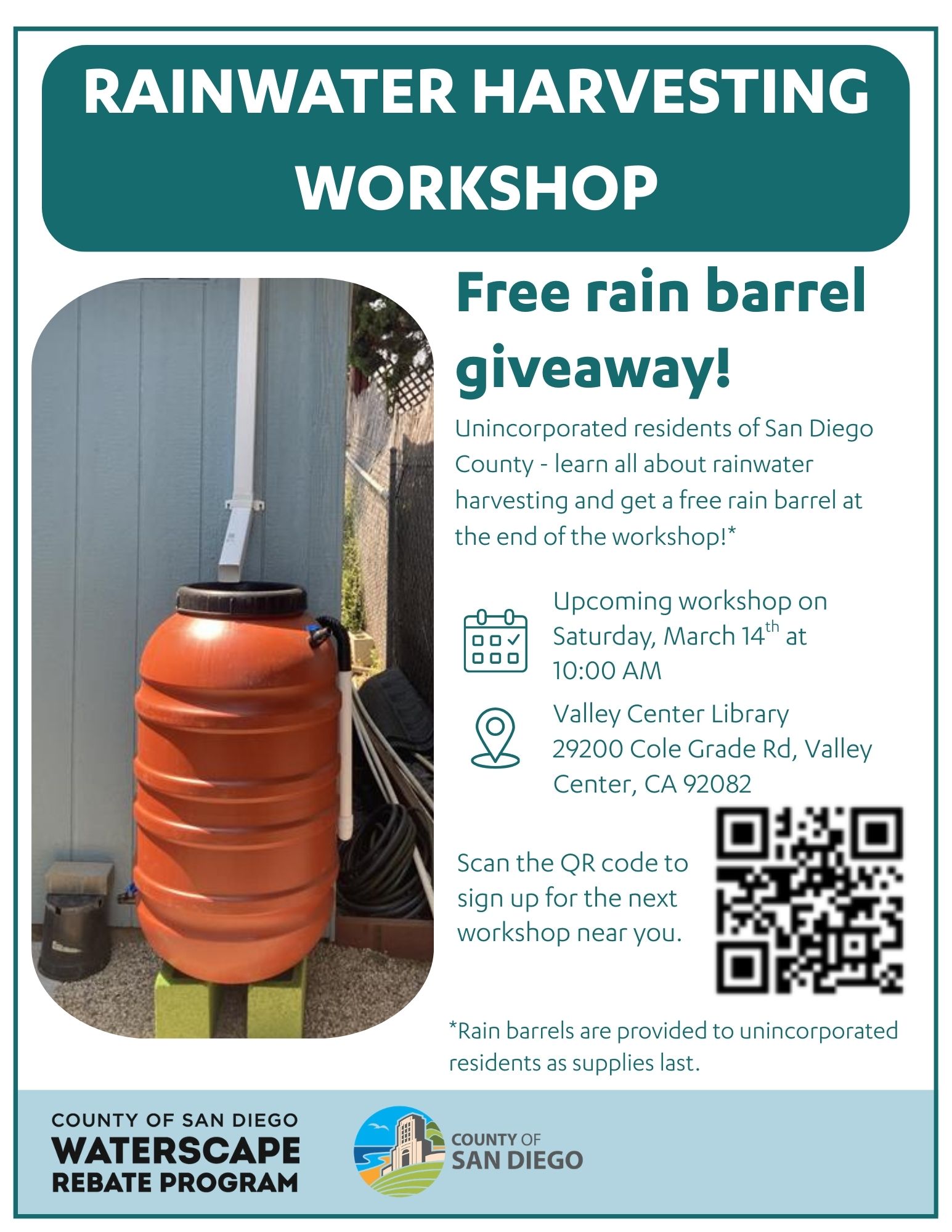 Rainwater Harvesting Workshop – Valley Center Library