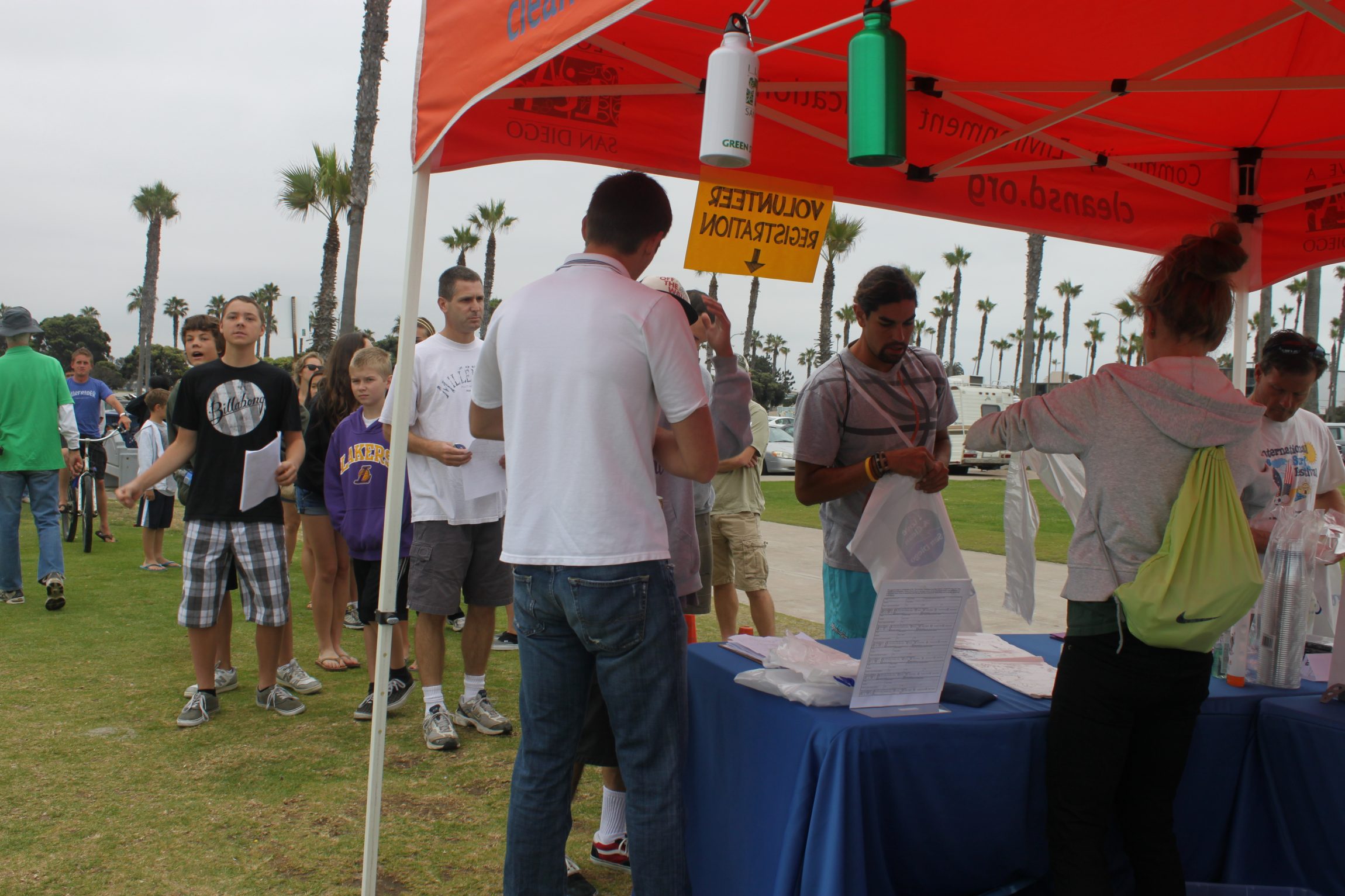 Already this morning, 227 volunteers came out and joined I Love A Clean San Diego by Belmont Park in Mission Beach for the Morning After Mess cleanup. After having the day off yesterday to celebrate Independence Day, there was no better way to start off the day than with a beach cleanup to recover all the mess from yesterday’s festivities. It was an early start for me, getting up at 7 so I could get to Belmont Park by 8 to start setting up. To be honest, I started quite slow since I was very tired, but I woke up once people started to come by and sign up. The mood was great around the volunteers as there were many eager people ready to participate, and we had 94/9 radio right next to us playing music and advertising our organization and event on the radio.