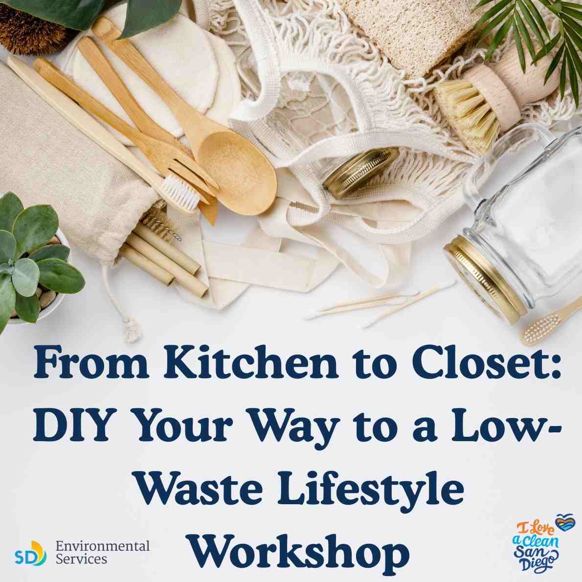 Join I Love A Clean San Diego for our free From Kitchen to Closet: DIY Your Way to a Low-Waste Lifestyle Workshop on Saturday, March 14 at 10 AM at Origins Grocer – South Park to learn accessible ways to live a more sustainable lifestyle! During this workshop, we’ll cover: