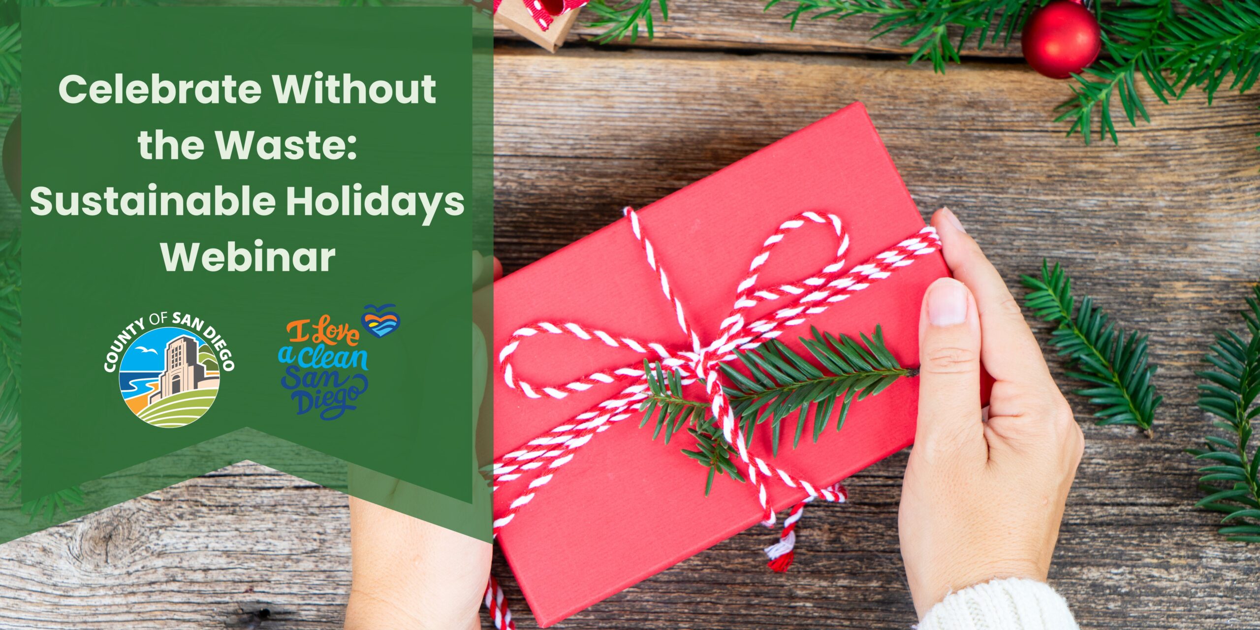 Don’t let holiday celebrations lead to increased waste! Join I Love A Clean San Diego and the County of San Diego on Wednesday, December 3, from 10-11 AM for our Celebrate Without the Waste: Sustainable Holidays webinar.